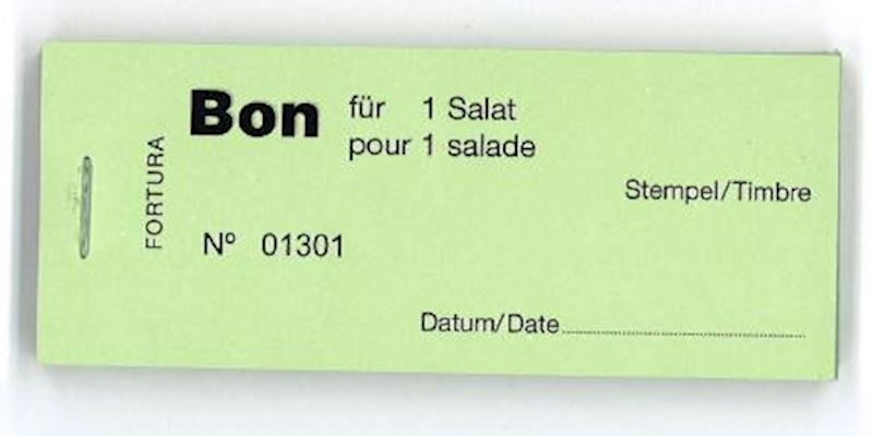 Bloc de bon avec 100 bons pour 1 salade